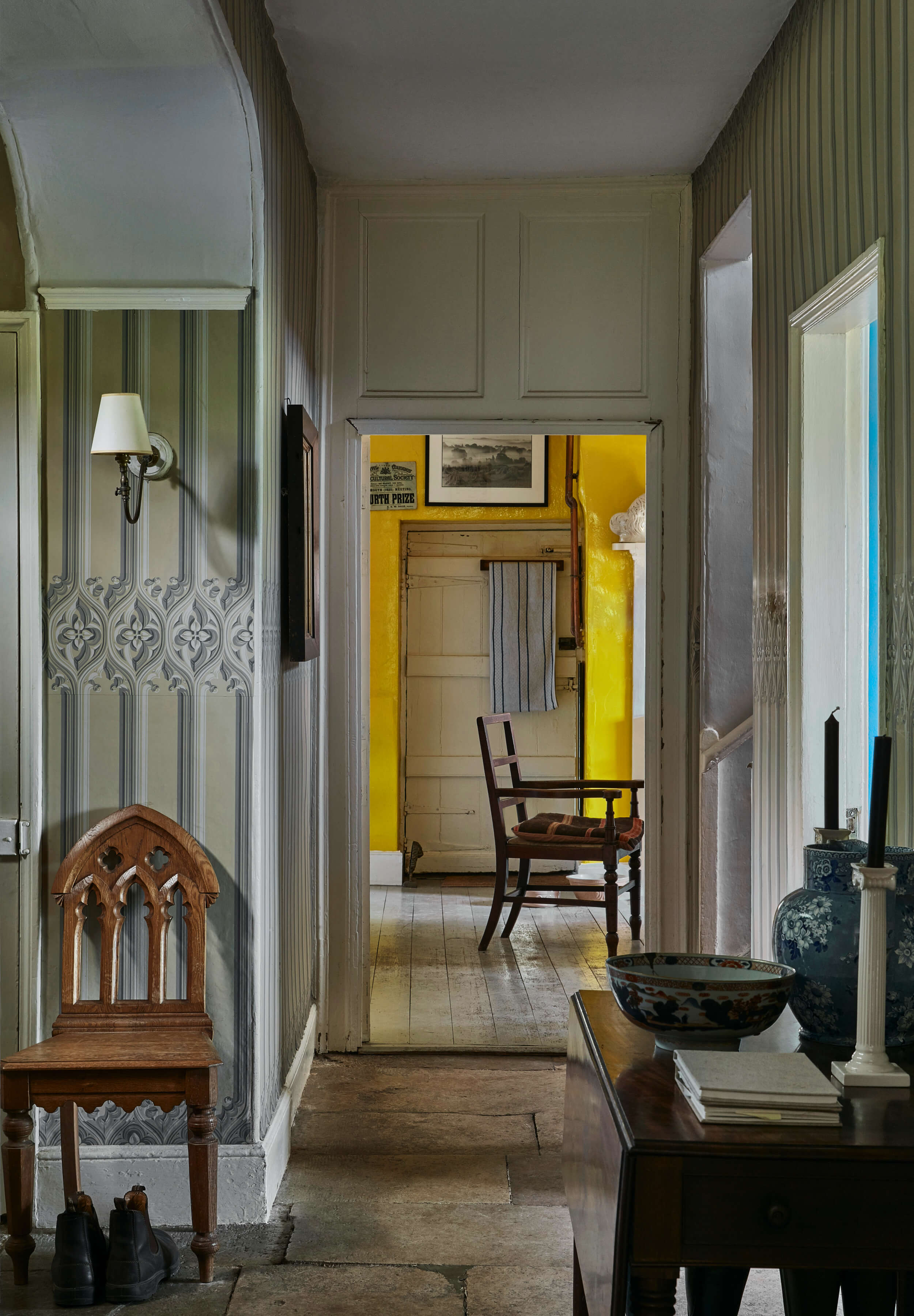 As well as significant exterior alterations and extension, Rupert designed the interior architecture of all the new rooms in the castle, including the spectacular double height staircase, kitchen, bedrooms and service wing shown here. The interior decoration was carried out by the owner, working closely with Kate Arbuthnott.