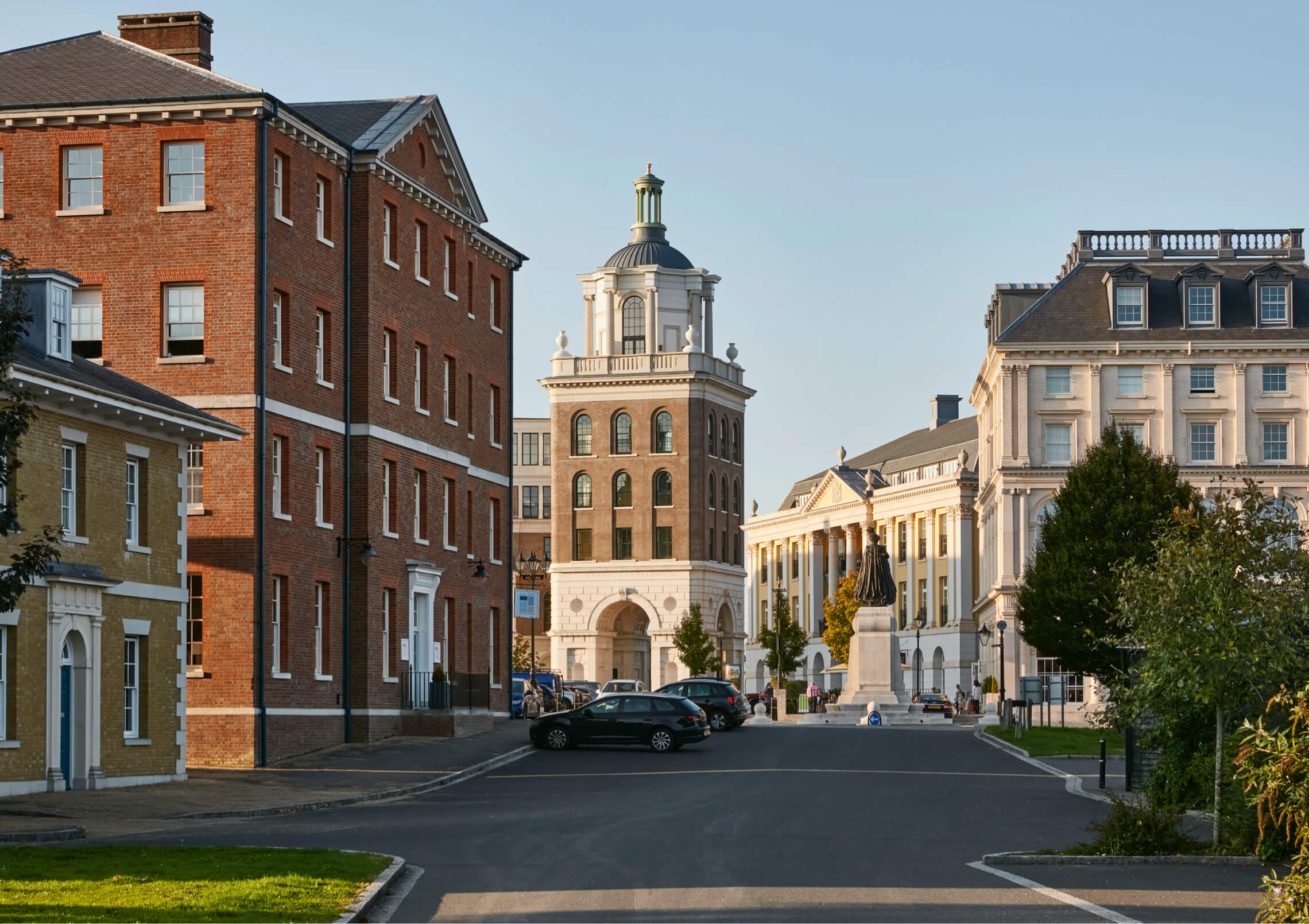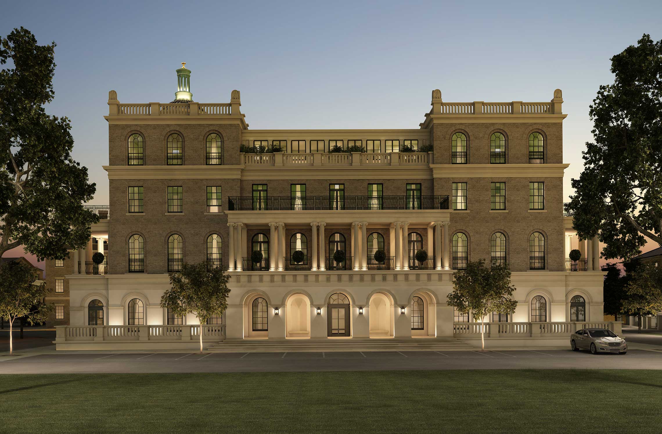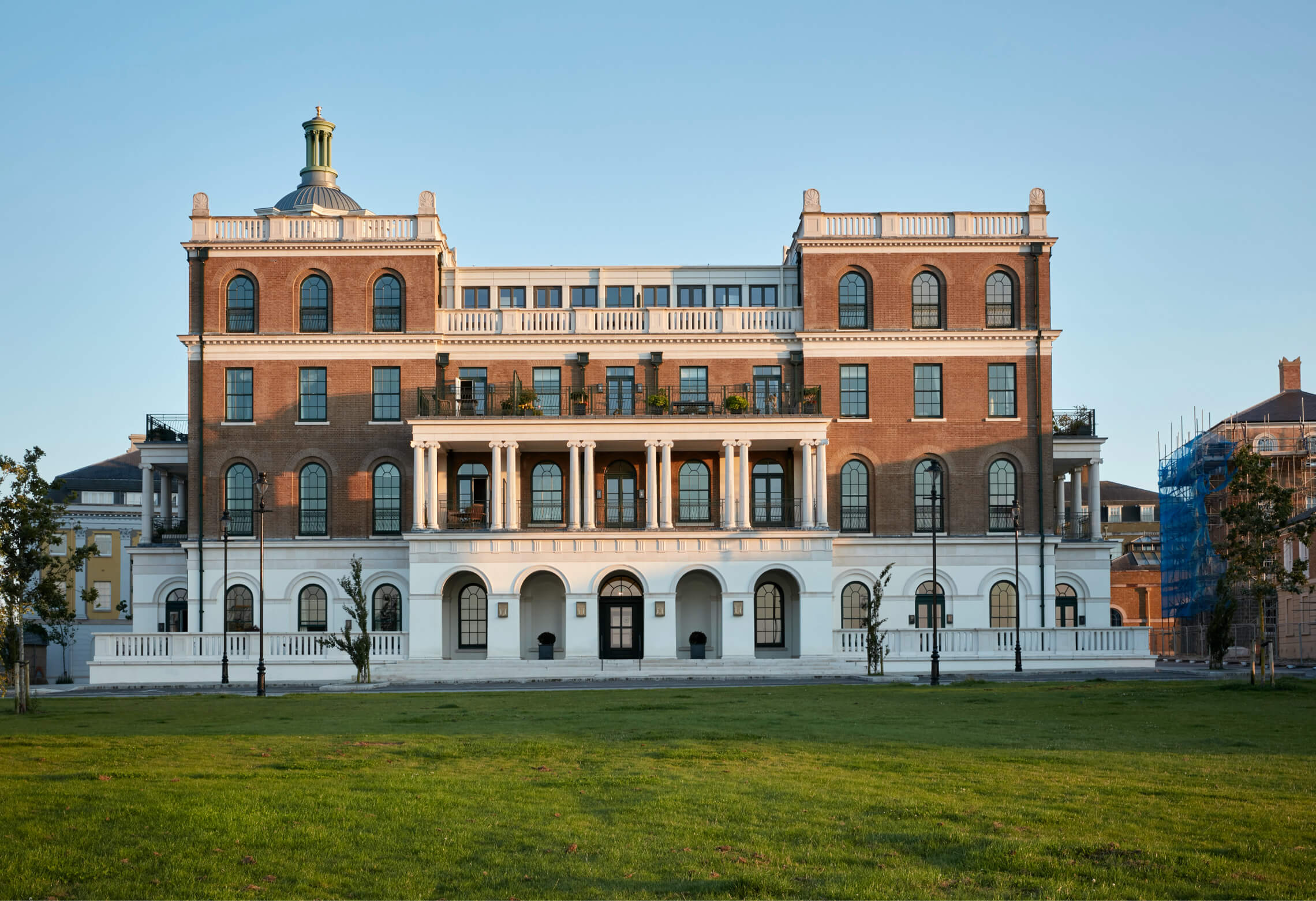 Over several years the Duchy has developed ideas for the proposed building; ultimately deciding that it should be a development of luxuriously appointed, beautifully-designed apartments incorporating the tower into the scheme. Ben Pentreath was appointed to design the building in 2012 and planning was obtained in 2014. The square, lined on other sides with buildings designed by Quinlan and Francis Terry, was opened by H.M. The Queen in 2016 and Royal Pavilion opened in 2018.